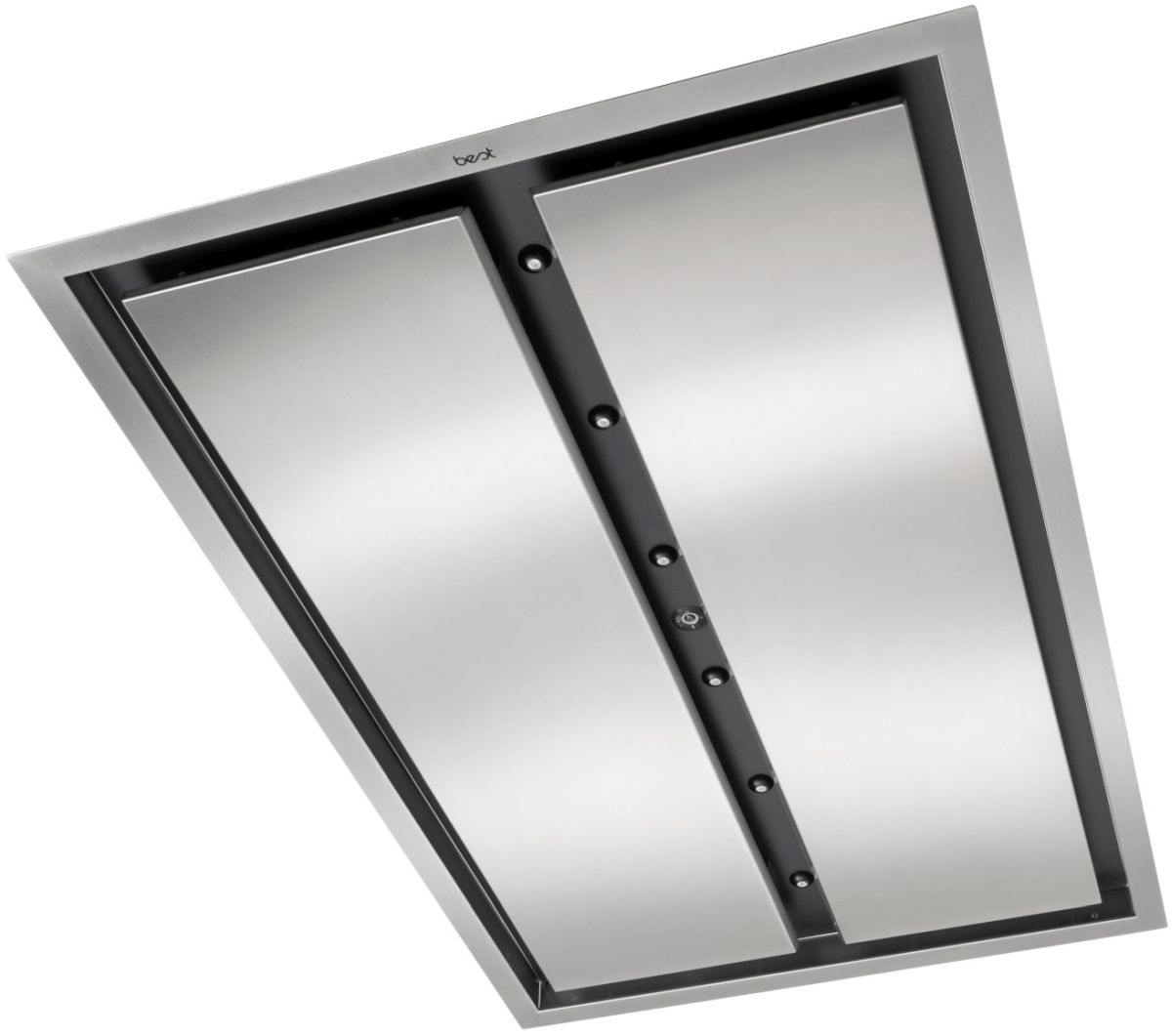 Stainless panels lie flat to ceiling for minimal intrusion; 110 cm (43-3/8 inch) width